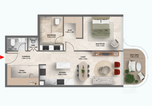 • 1 Chambre + Study – 812 Sqft – à partir de 2.1 M AED