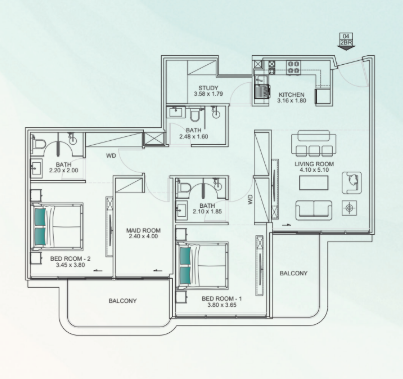 2 BEDROOMFloarea By Breeze - Mashriq Elite231192 Sqft1369 Sqft